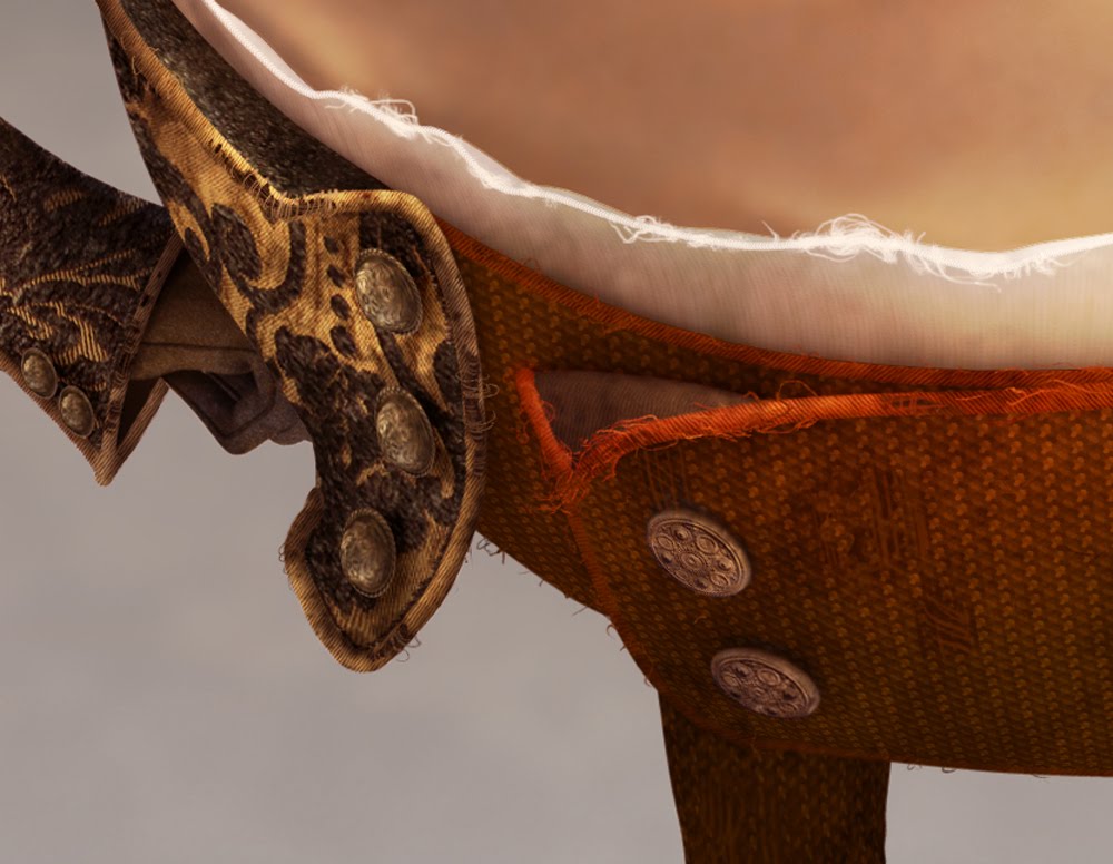 Sometimes, I'll bring these kinds of paintings to an extremely high level of finish and detail. This was done as a design for the finished look of the textures for this character, and I didn't want there to be ANY questions as to what it should look like. Yes, there's some photo collage.